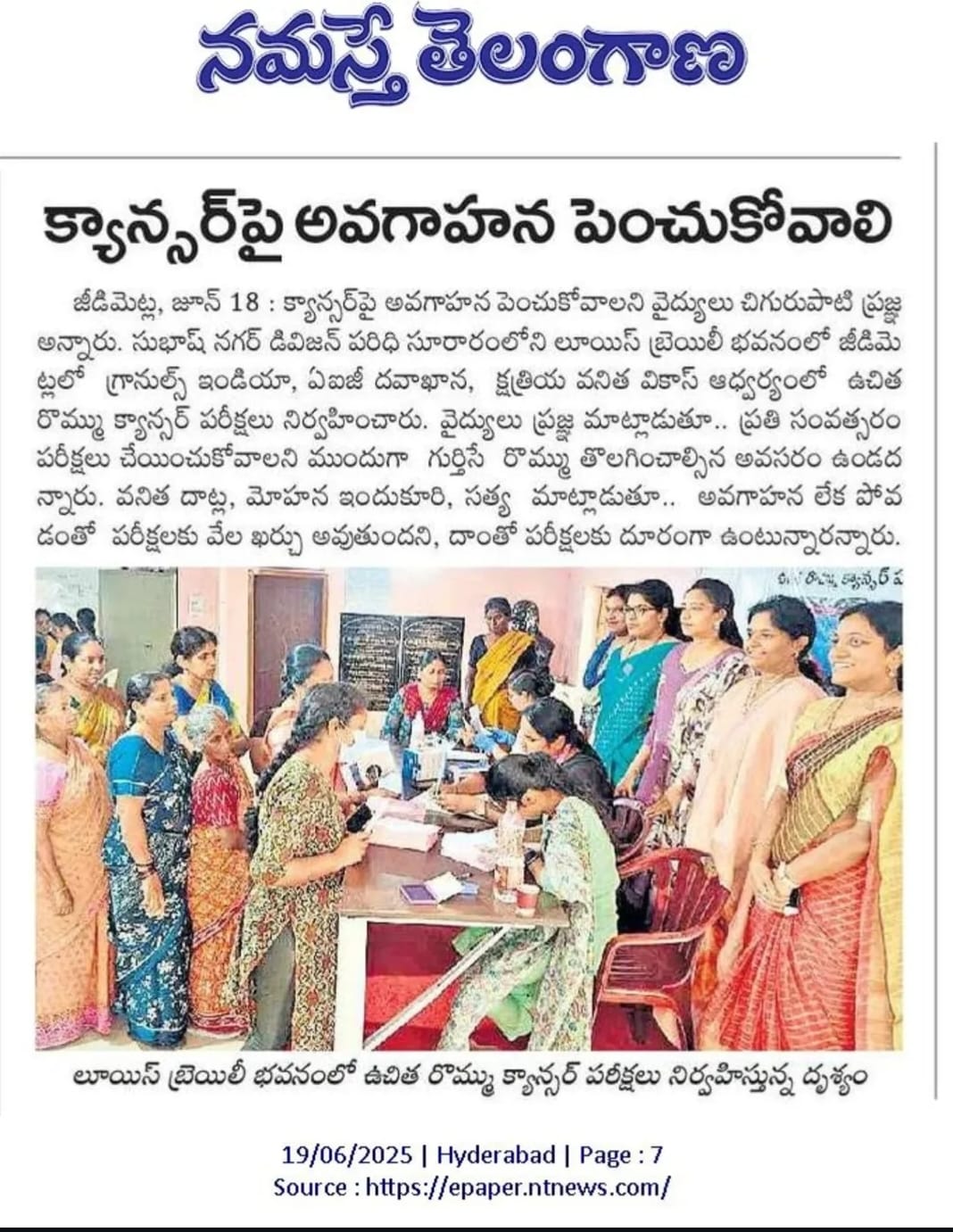 KVV in partnership with Dr. Pragnya, AIG & Granules, conducted a special health camp for underprivileged Kshatriya women.